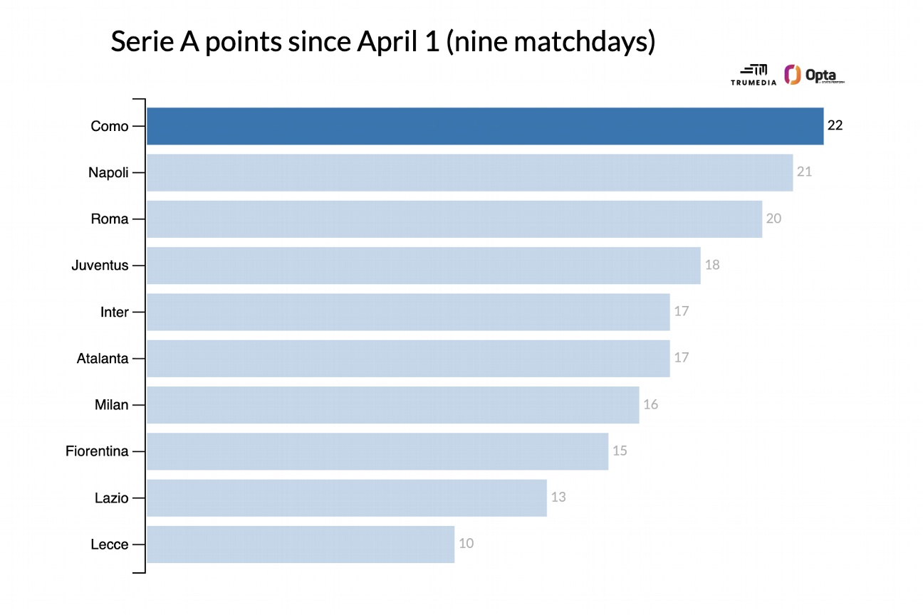 Of course, this only continued what we saw late last season. Since April 1, no team has generated more points in Serie A than Como.